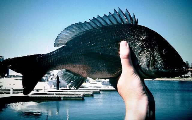 | A real brute of a bream, pulled from a pontoon. These fish will really test you. |